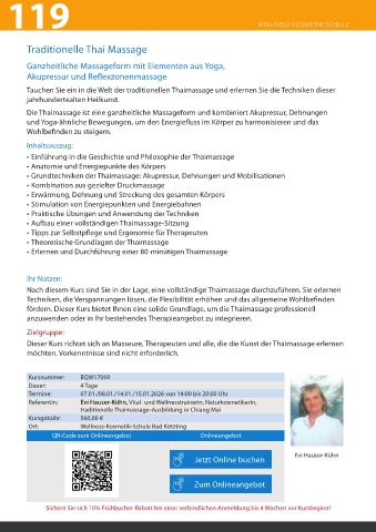 fördern. Dieser Kurs bietet Ihnen eine solide Grundlage, um die Thaimassage professionell