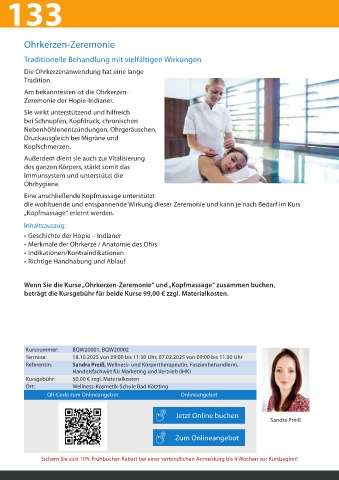 Wenn Sie die Kurse „Ohrkerzen-Zeremonie“ und „Kopfmassage“ zusammen buchen,