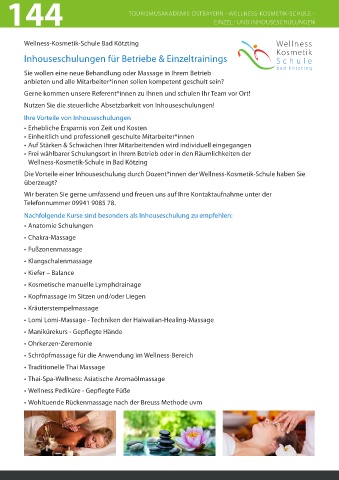 144 TOURISMUSAKADEMIE OSTBAYERN - WELLNESS-KOSMETIK-SCHULE -