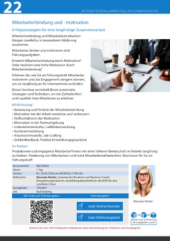 22 BETRIEBSFÜHRUNG, MARKETING UND KOMMUNIKATION