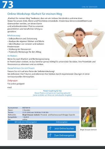 in Ihrem Leben streben, ist das Seminar genau richtig! Es unterstützt Sie dabei, Ihre Potentiale und